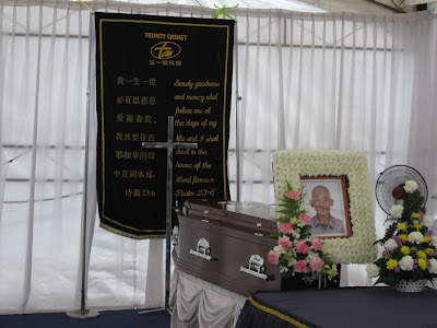 Was on leave today and tmr. Reached the funeral at around 11 to help out. The weather was super hot today and so Jodie and Videl went up to Karin's house to do their school work. Went back to Mil's house to fetch Mil, Justin and Veona to the funeral as they have just finished their school. The Cortege leaves for Manda Crematorium at around 5.45 pm. Was quite surprised that it's so late as the normal timing is around 12 pm.